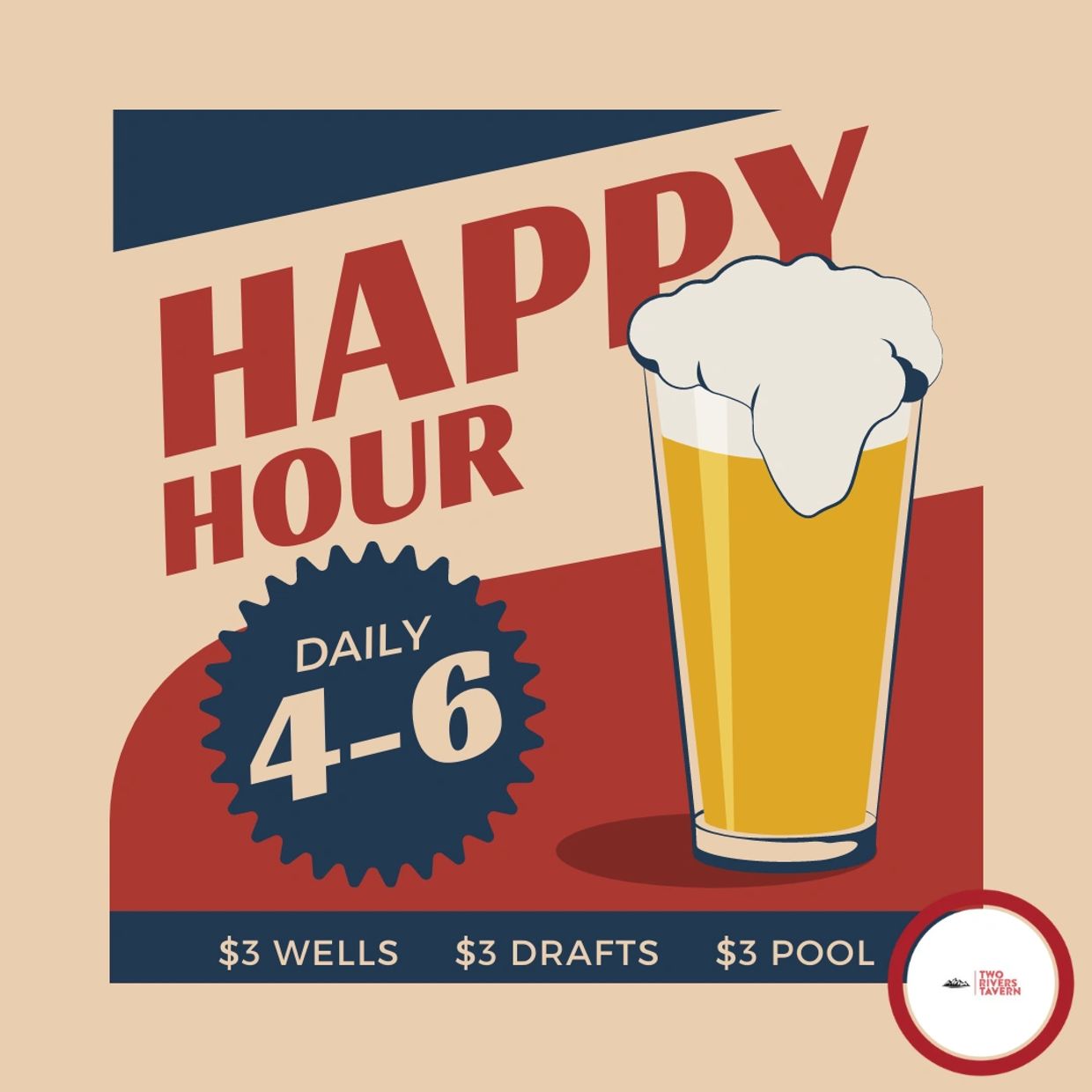 Join us for Happy Hour 3pm-6pm and 9pm-11pm daily with wonderful Drink and Food Specials. A directory to Local Happy Hours at bars restaurants and lounges listed by name location and zip code with food and drink specials. 475 select drafts 525 house wines 325 select cans and 375 off signature cocktails.